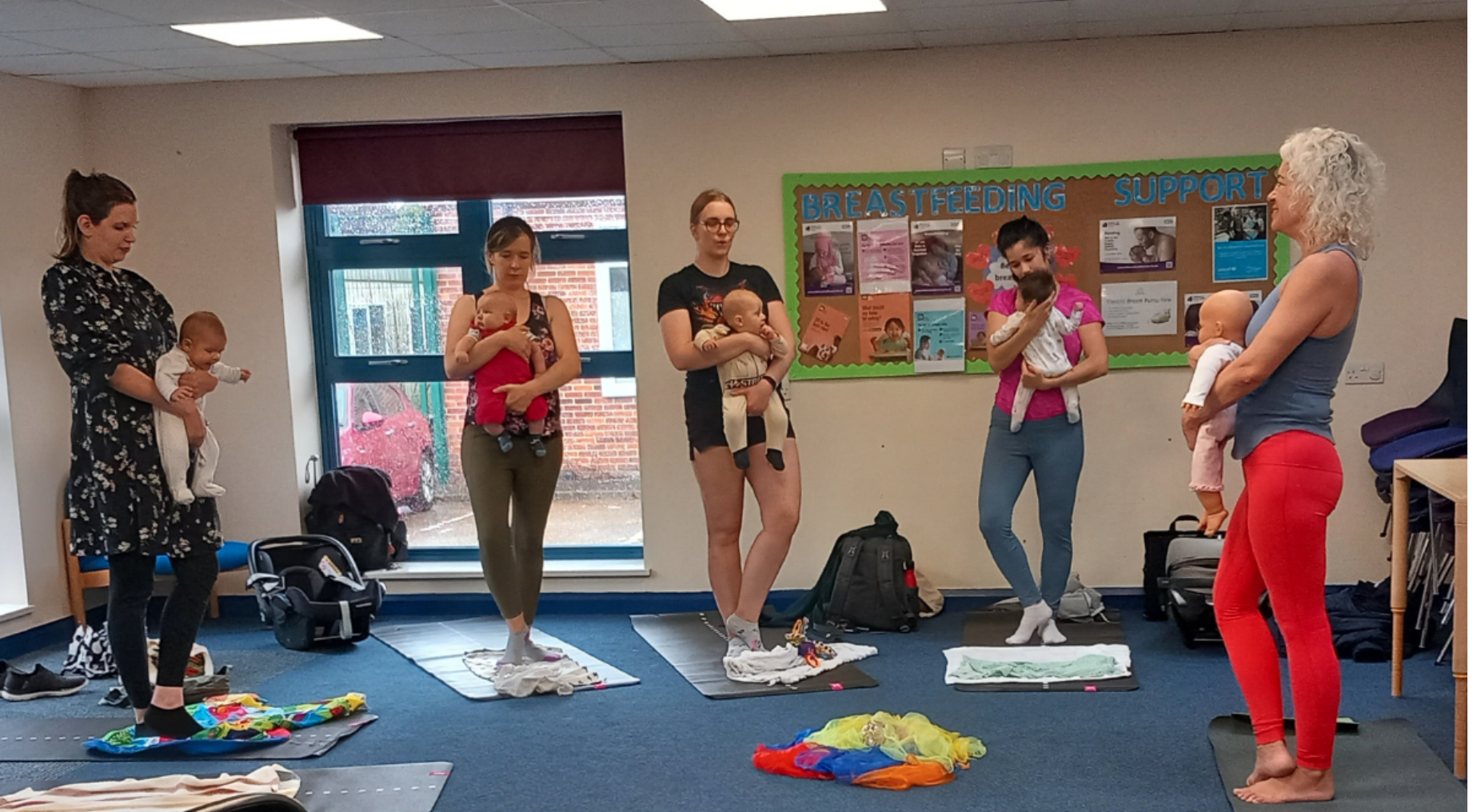 Last year I supported Carly Pearson at Surrey Sports Clubs(part of Surrey university to provide community yoga with funding & support from sports England & Guildford Borough council ( pre & post natal yoga classes in the surrounding area of Guildford borough), bringing the unique offering of Yoga, fitness & fun to pregnant ladies & new mums with their babies. The classes were to increase mental health, fitness & also develop a sense of community, support & friendship.
