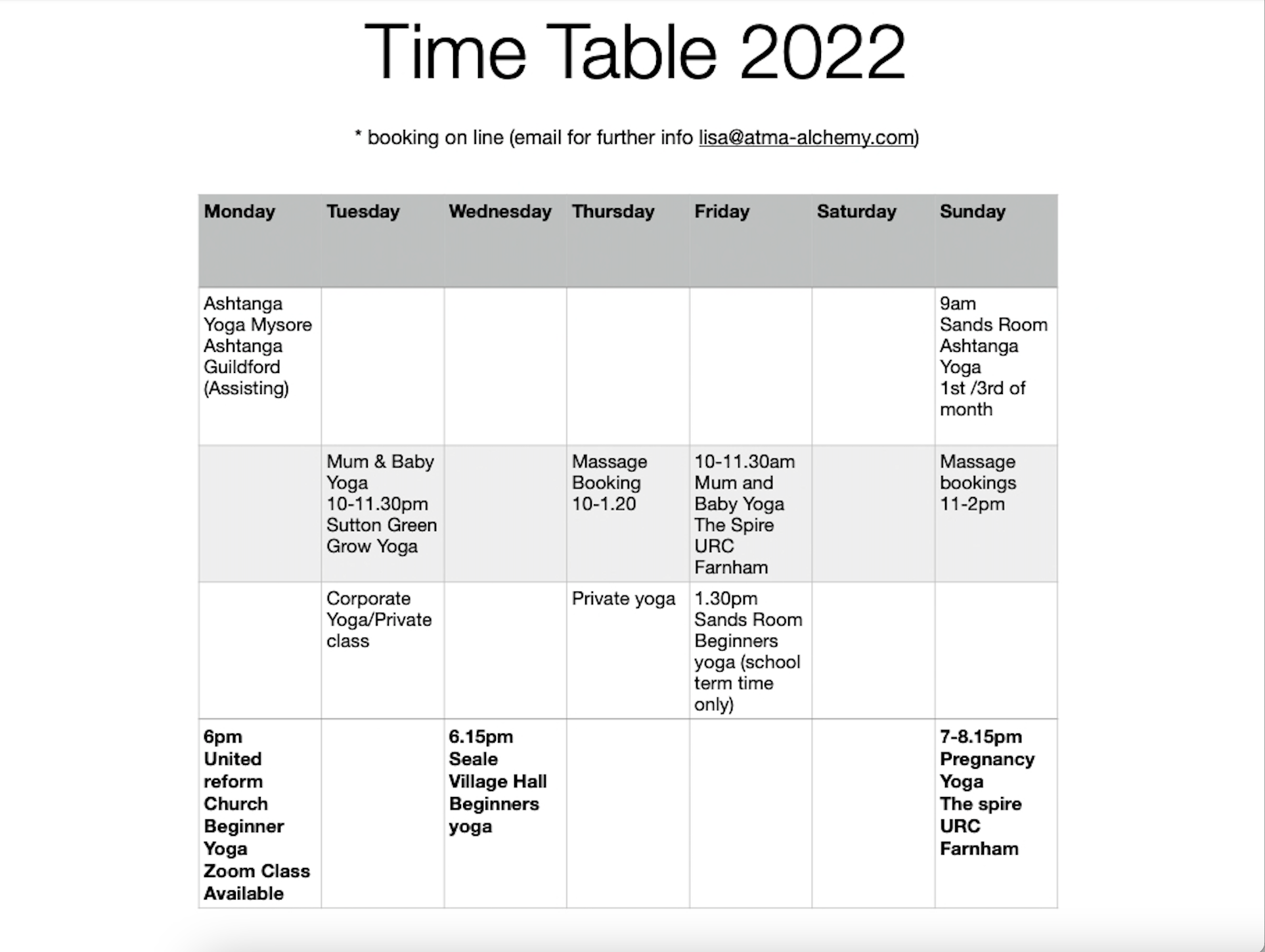 To book :https://www.atma-alchemy.com/yoga-classes/beginnersyoga select "Guildford URC 5.15pm 21/11/21-12/12/21"